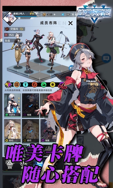 【战斗天使(0.1折爽玩版)】是一款竖版卡牌游戏,进入游戏您将与众多绝美女神机器人一起并肩作战,开启难忘的科幻世界冒险之旅!五大种族,四大职业,打造属于你的专属队伍;各种PVP、PVE等玩法,让体验根本停不下来。
