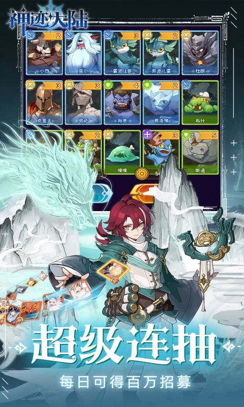 二次元卡牌《神迹大陆》全新免费版本强势来袭!全场0.1折永不溢价,天天都能领10000代金券,惬意玩转次元世界。一元百倍活动,每天高免充福利,不肝不氪挂机就能轻松升级!集结各路英雄,自由搭配小队通关打boss,享受爆率超高!冒险路上,多位经典动漫角色等你来解锁!各地美食、深海鱼群等你来收集!立即启程,开启次元之旅!