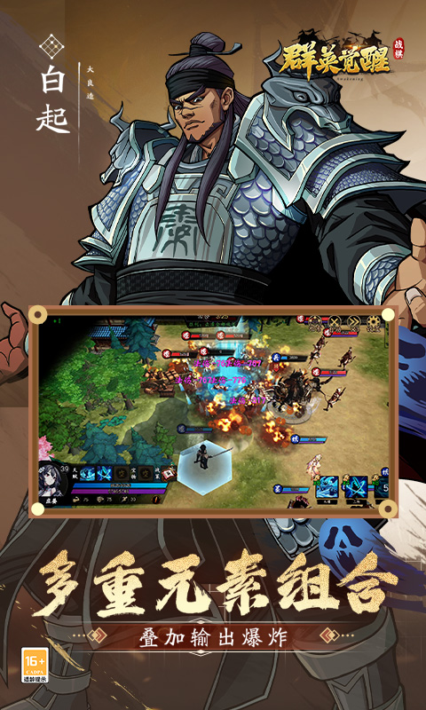 游戏中春秋战国诸家英雄豪杰悉数登场,上百种技能、数十种战策可供玩家选择,结合特色的元素机制。让您自由排列组合,同一个英雄也能打出不一样的效果。