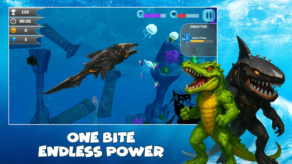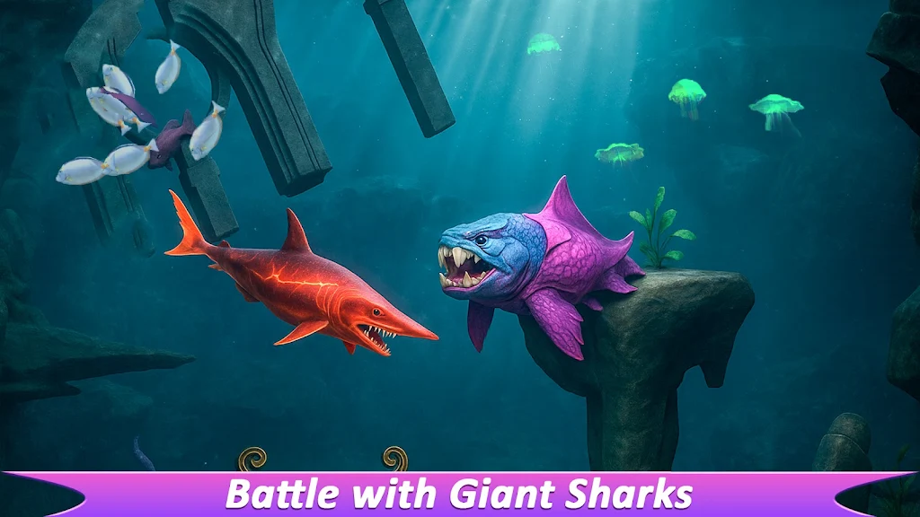 在《鲨鱼进化:进食与生存》中,进化是游戏的一大特色。随着你不断捕猎和生存,你将解锁各种鲨鱼物种。从灵活的珊瑚礁鲨到强壮的巨齿鲨,每种鲨鱼都有独特的能力和攻击方式。每次进化都意味着更高的速度和更强的攻击力,帮助你在面对大海中其他强大的生物时占据优势。