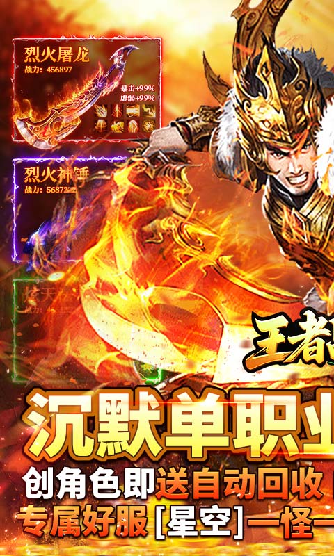 王者战神是一款星空题材类的1.85沉默单职业传奇手游,玩家在挂机的同时不断地完成新的剧情和解锁新的地图,玩法丰富,探索性强,游戏内有详细的攻略教程,跟着攻略走,玩起来更得心应手!!!