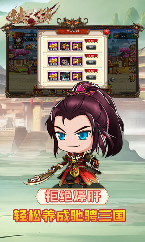 游戏玩法丰富多元,既有无需玩家时刻紧盯屏幕的 24 小时无间断挂机升级玩法,让主公事业稳健前行,又有回合制策略战斗。在战斗中,玩家需要巧妙搭配武将阵容,根据敌方特点制定战术。丰富的任务系统涵盖主线、日常和活动任务,完成即可收获丰厚资源与奖励。此外,背水一战、过关斩将、世界 BOSS、竞技场等多样活动玩法,为玩家带来无尽的挑战与乐趣。