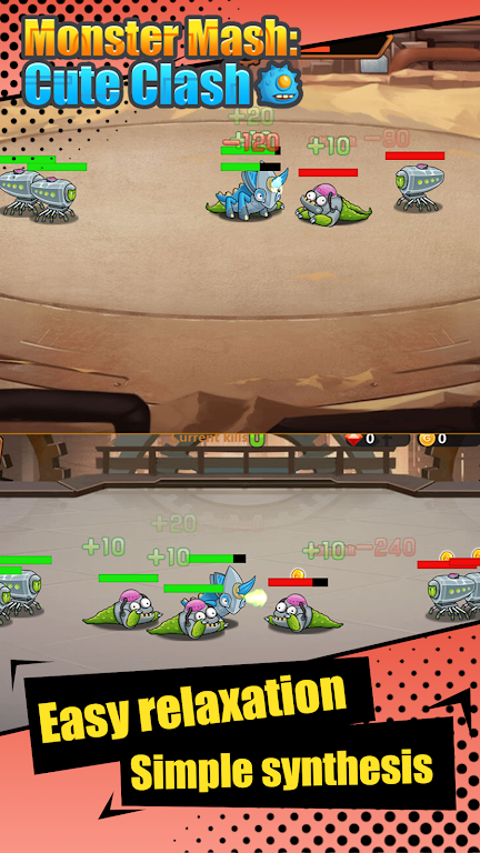 该游戏采用简单而直观的回合制战斗系统。一场战斗开始后,你的怪物会直接与敌方怪物进行攻击,直到其中一方的生命值耗尽。每次出战的怪物都将是你合成的最新成果,与敌人进行对抗。通过击败敌方的强大怪物群体,你将能够顺利通过每一个阶段,探索更具挑战性的关卡。