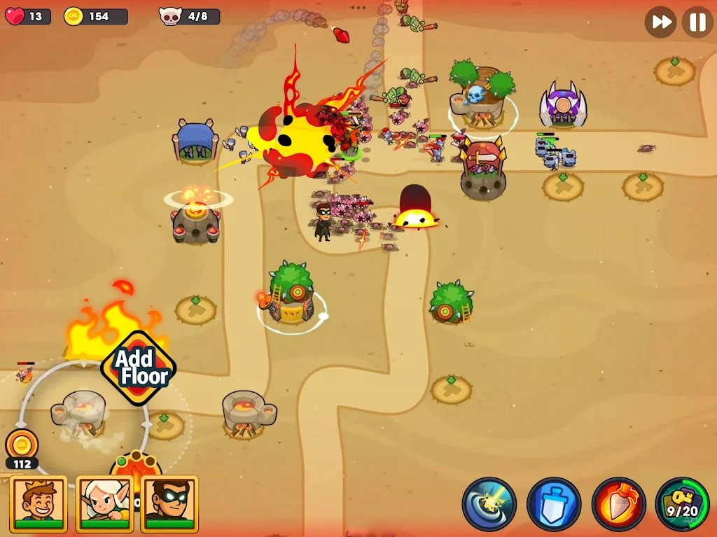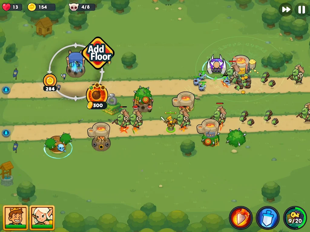 在《双重防御塔防:双堡守卫》中,玩家将会接触到超过十种不同的塔楼和英雄角色。每个塔和英雄都有其独特的主动和被动能力,玩家需要充分结合这些特性,创造出最强的组合。探索这个多样化的游戏世界,寻找适合自己的最佳阵容,提升你的战斗力,成为无可匹敌的防御者。