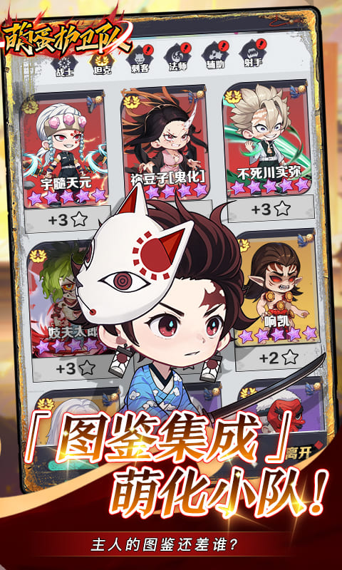 佛系放置与深度策略完美交融!一键挂机自动积累资源;Q萌斩鬼之王化身鬼杀队组建专属猎鬼小队。