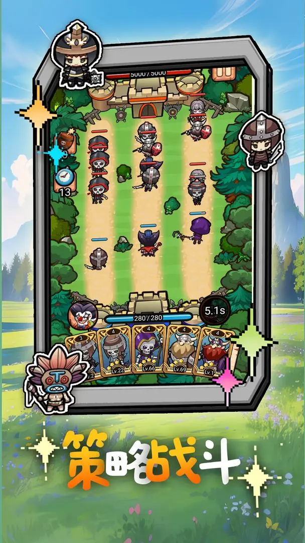 在《无畏军团》中,玩家将通过放置卡牌来展开战斗,游戏操作简单易上手。玩家只需将自己收集到的卡牌放置在战斗区域,便可自动进行战斗。随着时间的推移,卡牌将逐渐生成能量,玩家可以用这些能量来召唤更多的卡牌或升级已有卡牌,增强战斗力。不同的卡牌组合将产生不同的效果,玩家需要灵活运用策略,以应对多样化的敌人。