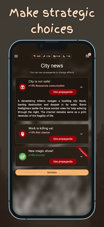 在《维多利亚放置》中,玩家需要应对各种突发的城市事件。这些事件将挑战你的管理能力和决策能力。利用宣传手段维护社会秩序,确保城市的稳定与发展。通过参与具有挑战性的小游戏,做出关键决策,推动你的文明不断向前发展。