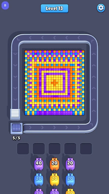 《像素流》引入了五个等待槽,这为玩家提供了额外的战术选择。在等待槽中,玩家可以堆叠和分类颜色相同的猪猪,减少混乱,提升后续发射的效率。当时机成熟,再次点击传送带,待发射的猪猪便会陆续回到舞台,继续执行任务。此机制使得整体流程更加灵活,极大增强了游戏的可玩性。