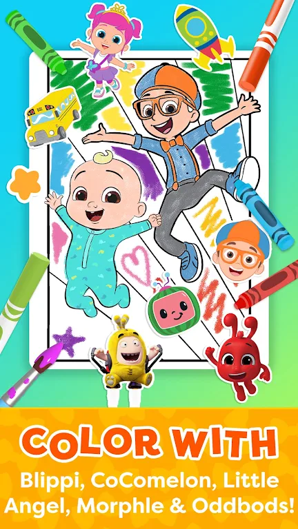 在这款应用中,孩子们将与众多熟悉并喜爱的角色如Blippi、CoComelon、Little Angel、Morphle和Oddbods一起,体验丰富的涂色场景。数百张精美的涂色作品展现了这些动画角色在各种有趣情景中的冒险故事,孩子可以通过涂色来参与这些故事,进一步增强他们对角色的理解和情感联结。
