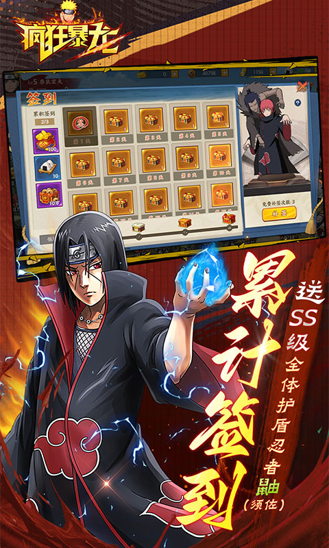 《疯狂暴龙》 ,横版激斗重现木叶巅峰对决,复现忍者羁绊世界。收集S级忍者,组建最强小队!登录即送百连抽,七日免费领传说三忍,累计签到送SS须佐鼬,全员S忍者开局不是梦!极致福利打造巅峰阵容,重温忍者羁绊,开启属于你的忍界传奇!