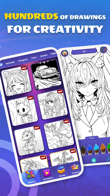 动物涂色画册是一款专为热爱艺术和想要释放压力的玩家设计的填色应用。这款游戏汇集了数百幅精美的图画,各种风格应有尽有,涵盖动物、龙、汽车、动漫角色、奇幻怪物、水下世界、机器人以及可爱的宠物等多种流行类别。游戏的多样性和丰富性使其成为适合所有人群的理想选择,无论您是儿童还是成年人,都可以在这里找到乐趣。