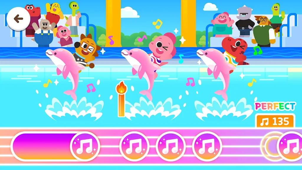 可可贝小小冠军还有一个特色的“狂热模式”,在这个模式下,玩家只要努力参赛,就能积攒狂热能量。当能量满了,就可以释放特别力量,增强在比赛中的优势。同时,游戏中还提供了多种道具,其中一些神秘道具可能会在关键时刻帮助孩子们逆转局势,比如突然的闪电袭击,增加了游戏的趣味性和挑战性。