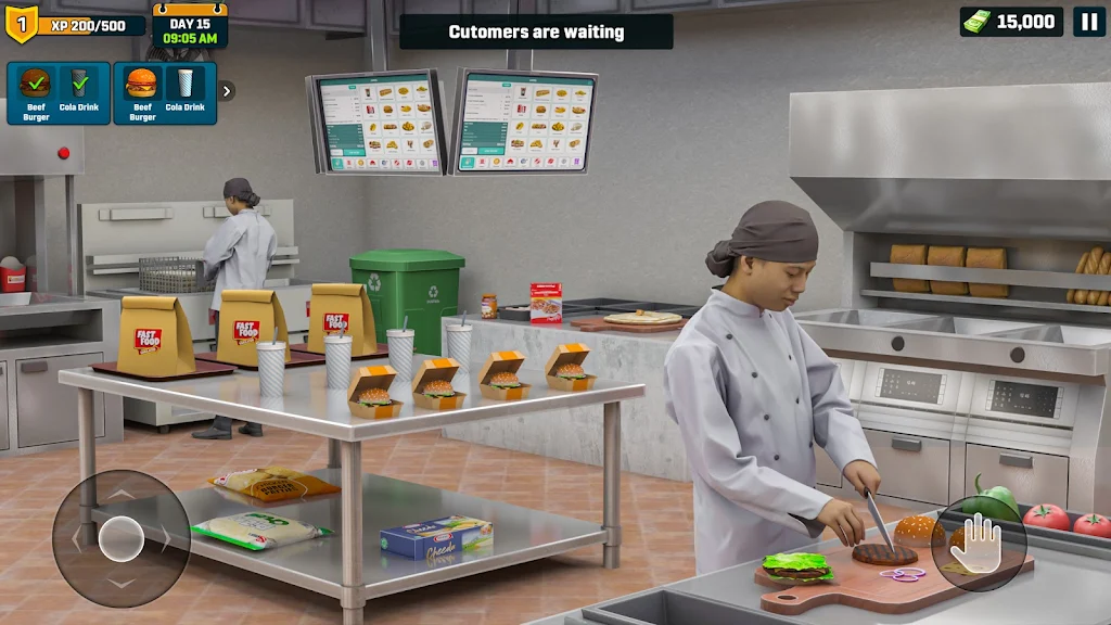 《厨师模拟器:快餐游戏》是一款快节奏的餐厅模拟经营类游戏,旨在让玩家沉浸在快餐业的繁忙与刺激中。在这款游戏中,你将化身为一名快餐店老板,负责经营、管理并确保顾客满意,同时处理多项任务。你的目标是通过高效的运营和卓越的服务,来提升店铺的知名度与盈利能力。