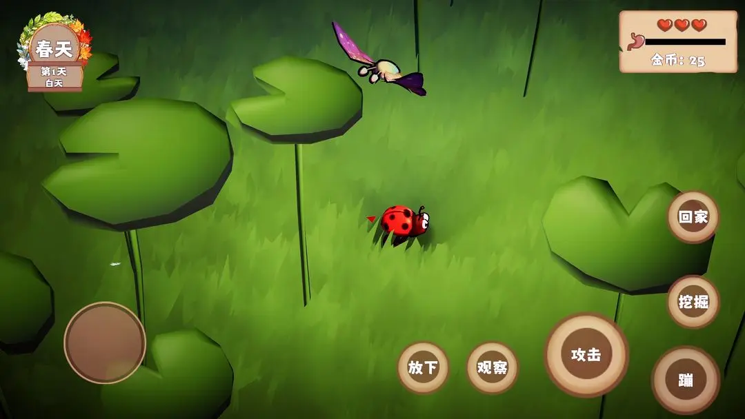 在“我是虫虫”的世界中,每一天都充满了未知和挑战。玩家需要通过挖掘、攻击、探索和观察等多种方式获取资源。在地面下或植物间,你可能会发现隐藏的食物和道具,这些都是帮助你生存的重要元素。合理使用这些资源,让你的瓢虫角色得以茁壮成长。