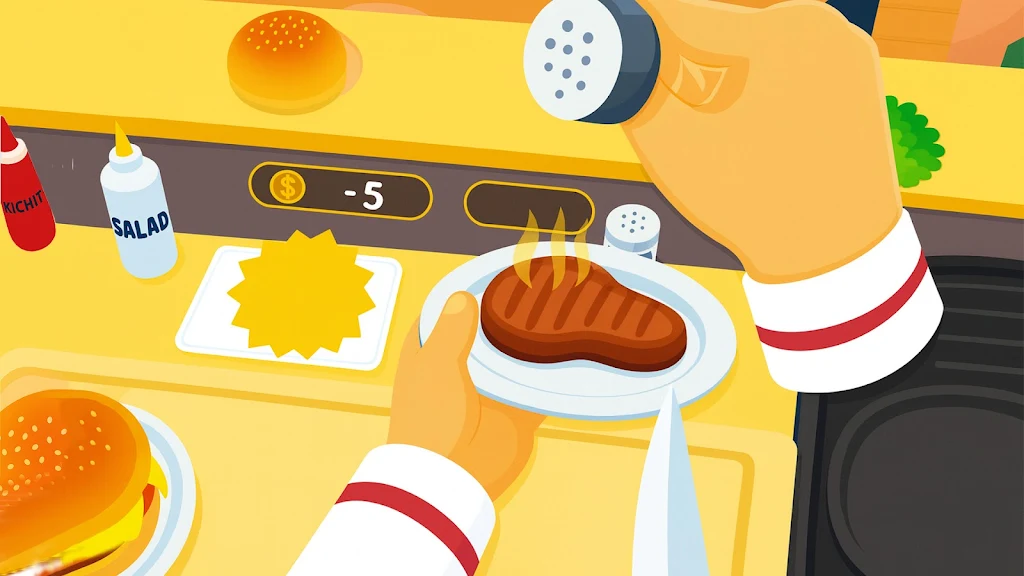 每一个关卡都是一个新的挑战,游戏中的内容不断丰富,带来更多惊喜。从简单的汉堡制作到复杂的宴会上菜,关卡的多样性让游戏保持新鲜感。随着你技能的提高,难度也会逐渐增加,考验你的反应速度与策略思考能力。每当你成功完成挑战,都会收获满满的成就感。
