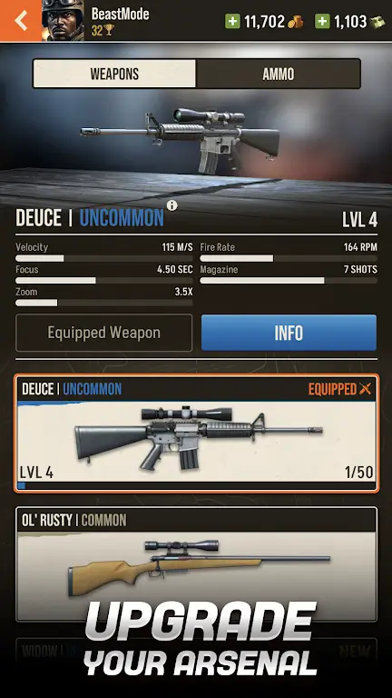 游戏中,玩家可以通过参与战斗解锁并增强多种现代狙击步枪,玩家不仅能选择不同型号的武器,还可以根据战斗需求配备各种专用弹药。随着武器库的扩展,玩家可以不断提升自己的战斗能力,以应对更强的对手。