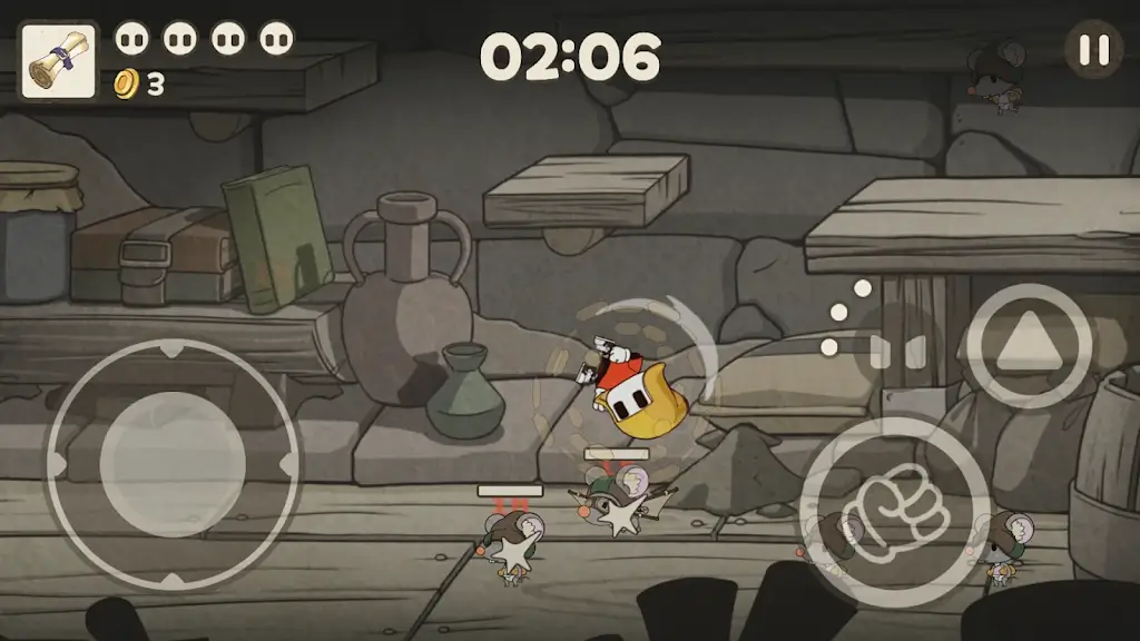 游戏中设定了丰富的挑战内容。在每一关中,你的目标是收集到三颗星,达到完美通关。这体现了你的冒险技巧和对关卡的理解。同时,收集的金币可以用来购买新道具或对现有道具进行升级,增强你的战斗能力,帮助你更好地应对后续的挑战。
