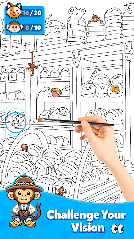 “寻找宠物”为玩家提供了丰富多彩的游戏场景,包括郁郁葱葱的丛林、繁华喧闹的城市、辽阔迷人的海滩等。每个场景都被精心手绘,展现出细腻而生动的细节,仿佛将你带入了一个充满无限可能的世界。在每一个场景中,隐藏的宠物都以不同方式巧妙地融入环境之中,等待着你去发现。