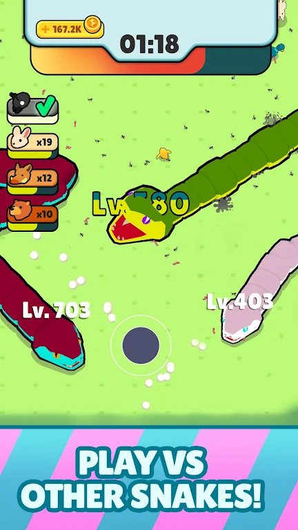 《饥饿蛇》不仅仅是一款单人游戏,它还设有竞技模式。你可以与朋友以及世界各地的玩家进行比拼,争夺最高分和最长蛇的荣誉。通过挑战其他玩家,您将不断提高自己的技巧,并发现更多高分秘诀。这个比拼不仅增强了游戏的趣味性,更激发了你追求更高目标的动力。
