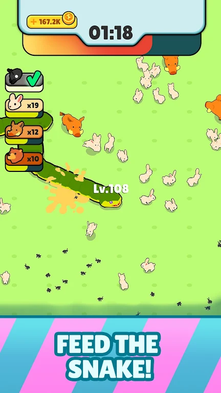 游戏的核心在于资源的收集。每获取一种资源,你的贪吃蛇就会增加一段,变得越发庞大。然而,随着蛇身的延长,移动的灵活性会受到影响。玩家需要运用灵活的策略和技巧,以避免让巨大的身体碰到障碍。此外,长蛇在收集资源内部的一些特殊加成和道具时也显得尤为重要,合理利用这些资源将帮助你在游戏中闯更远。