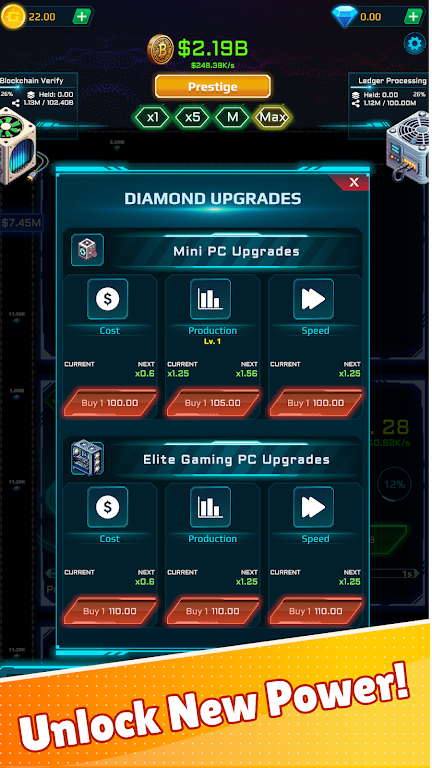 建设采矿设备是《闲置加密货币矿工》的核心机制之一。通过购买和升级不同类型的采矿设备,你将不断提高单位时间内的资源产出。每个设备都有其独特的特性,玩家需要根据不同的需求进行合理配置,使得资源的采集效率最大化。随着游戏的深入,你会遇到更强大的设备,这不仅需要资金投入,还需要策略上的考量。