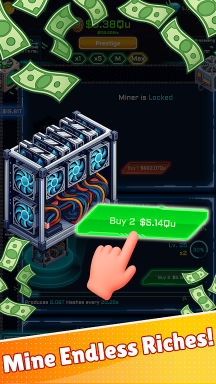 在《闲置加密货币矿工》中,玩家将带领自己的团队从零开始,逐步建立一个庞大的加密货币帝国。游戏邀请你体验从小规模采矿到全球化运营的转变,感受这一过程中的挑战与乐趣。通过建设采矿设备,你将开始踏上赚钱之路,收集各种资源,并利用这些资源实现持续增长。