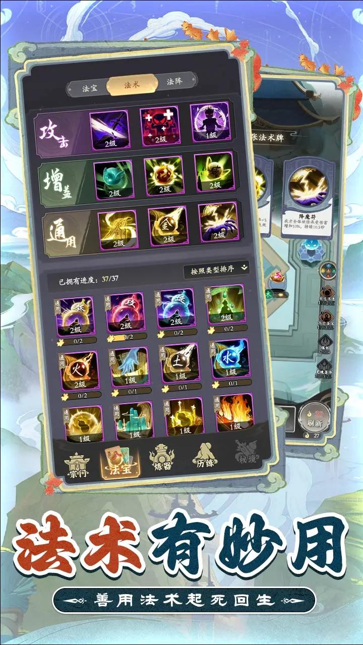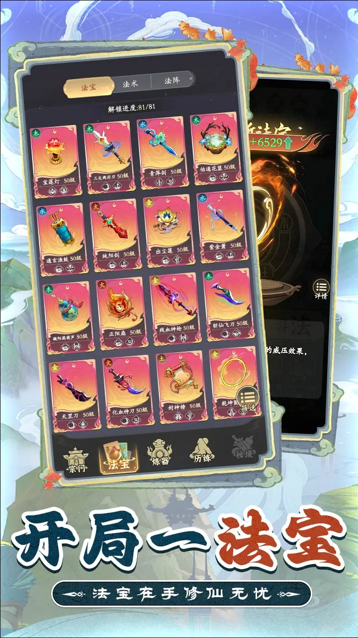 从新手到强者,《疯狂的法宝》为玩家提供了丰富的成长路径。通过不断的战斗、探索和炼器,玩家可以逐步提升自己的修为,解锁更强大的法宝和技能。同时,系统内丰富的成就和任务也使得每位玩家都能找到属于自己的目标,向着更高的境界不断迈进。在获得更强的法宝、提升更高的修为后,玩家将成为这个修仙世界中的绝对强者,掌控一切。