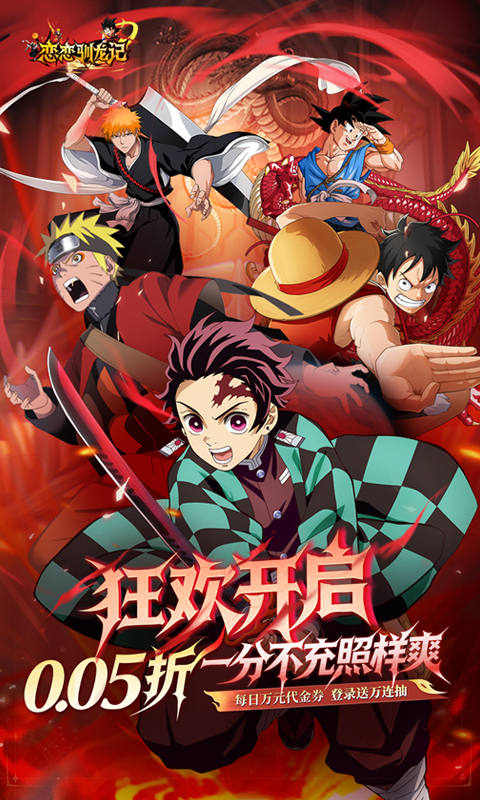 《恋恋驯龙记(0.05折动漫乱斗)》一款集合了海贼王、鬼灭、火影、死神、龙珠的策略卡牌玩法游戏,游戏融合炫酷战斗、武将战技和异界神兽等元素。