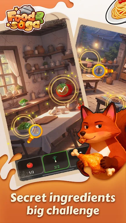 玩家需要在精美的插画场景中寻找各类隐藏食材。每一种食材都有其独特的背景和故事,这不仅增加了寻找的乐趣,也让玩家更加深入地了解这些食材的来源和特点。通过细致入微的观察与思考,你可以发现那些被遗忘的美味,收集并组合成新颖的料理,创造出令人惊叹的美味佳肴。