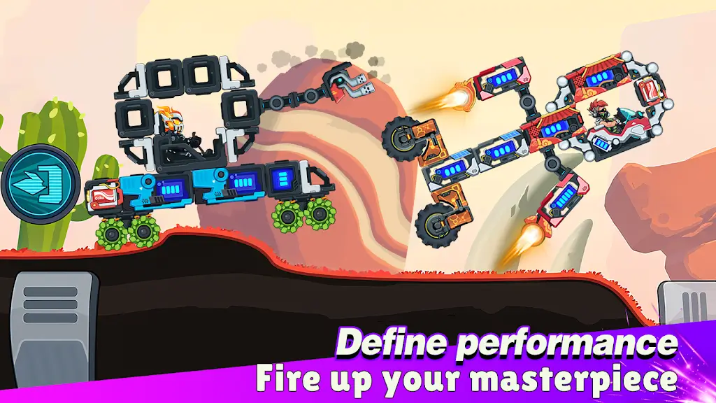 在《极速赛车向前冲》中,您将运用丰富的组合材料,自由组装出专属的战车。游戏提供多种模块选择,包括动力强劲的引擎、独特设计的车轮、致命武器及推进器等,您可以根据个人喜好与策略进行个性化改装。每一次改造都是为了提升赛车在极限竞速中的表现,使每一辆战车都成为您信心的延伸与力量的象征。