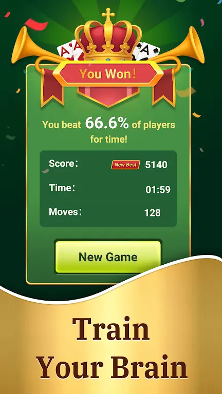 复古经典纸牌接龙还提供胜利统计功能,帮助玩家随时追踪自己的游戏进展、胜利次数与成就。这种设计不仅能够提高玩家的积极性,还能激励他们在游戏中不断挑战更高的目标。