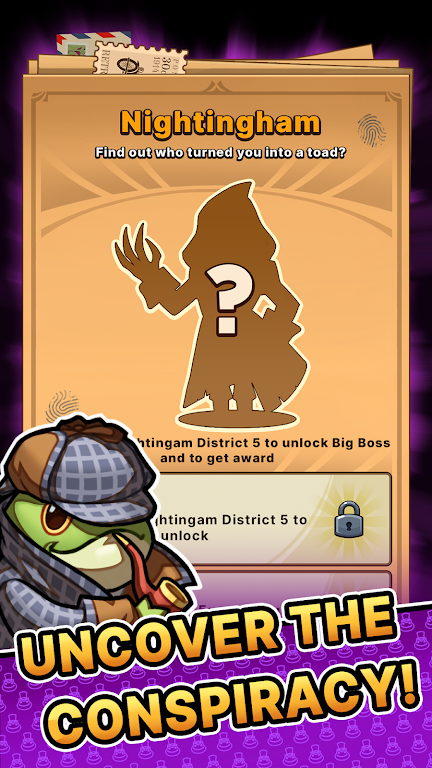 在《侦探之路》这款独特的放置RPG游戏中,玩家将化身为Froggs先生,一位传奇侦探,因遭遇一个神秘教派的诅咒而变成了一只青蛙。你将探索一个充满魔法与谜团的奇幻世界,揭开隐藏在黑暗港中的各种秘密。在这里,每一个案件都充满挑战,等待着你去破解。