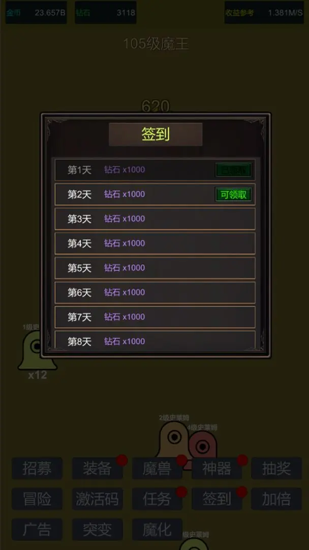为了让玩家在游戏中感受到轻松愉快的氛围,《小小史莱姆推翻大魔王》设定了丰富的每日签到和趣味任务。这些任务设计简单易完成,能够带来丰厚的奖励,助力玩家快速发展。告别传统游戏中的爆肝模式,享受轻松日常的同时,获取各种资源与奖励,让游戏过程中的每一个瞬间都充满乐趣和成就感。
