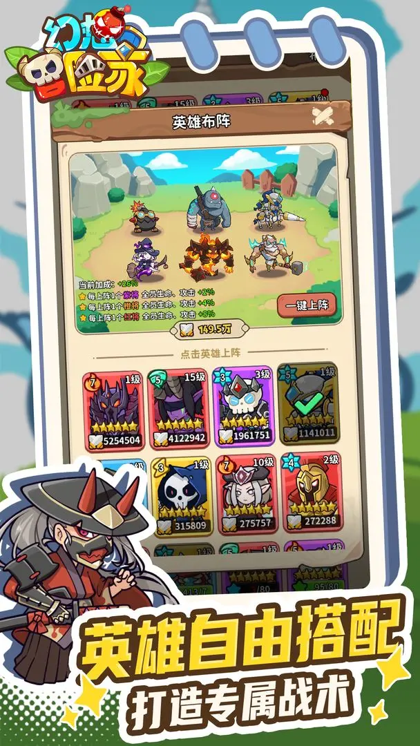 在《幻想冒险家》中,玩家将带领自己的英雄小队走向征战。每一次的出征都带着挑战与机遇,不仅需要攻城掠地,还要征讨邪恶的首领。游戏内设有丰富的随机技能、隐藏宝藏和神秘事件,使每次冒险都充满乐趣和新鲜感。在探索未知领域的过程中,你将遇到各种惊喜,战胜更多强敌。