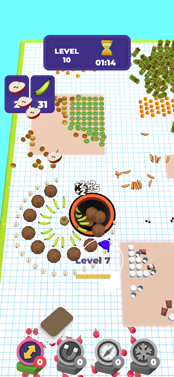 《洞吃一切:美食大师》中,有大量诱人的食物等待着你的吞噬。从新鲜的水果和蔬菜,到令人垂涎欲滴的汉堡、披萨、甜甜圈等美食,各种各样的食物将逐层呈现。食物不仅仅是玩家的目标,还是视觉上的享受,每次吞噬都会伴随着独特的声音和动画效果,让人倍感满足。
