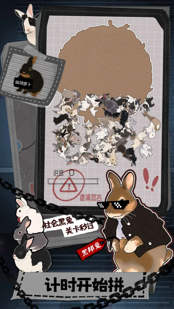 游戏内拥有超过100只独特设计的兔兔拼图,每一只兔兔都有着惹人喜爱的胖胖脸,等着你去戳戳。它们身上带有不同的表情和姿态,彰显出各自的个性。你需要细心观察,巧妙组合,将它们的一片片可爱身影一一拼接。每当你成功完成一组拼图,兔兔们都会开心地跳跃,释放出无比的快乐气息。