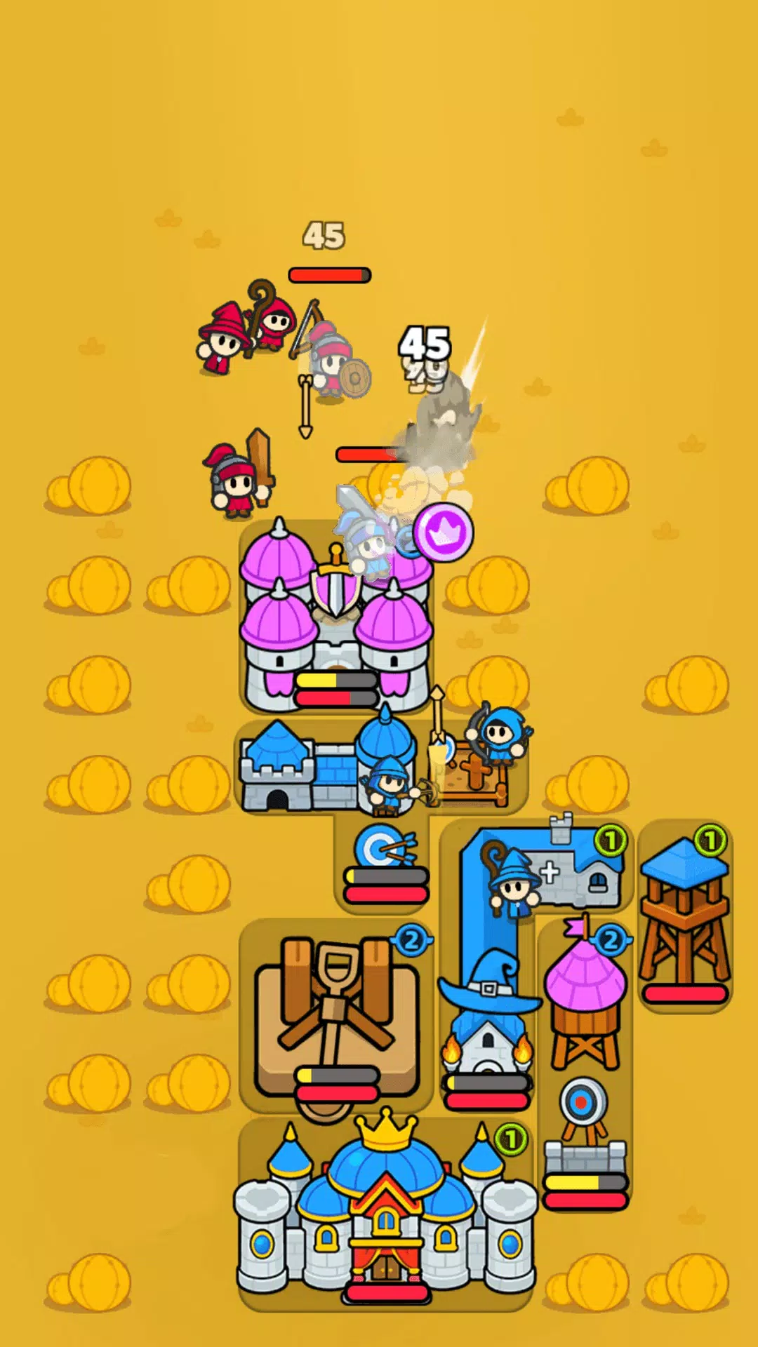 合成并升级弓箭手、骑兵、法师和其他兵种,组建终极军队,抵御入侵者。