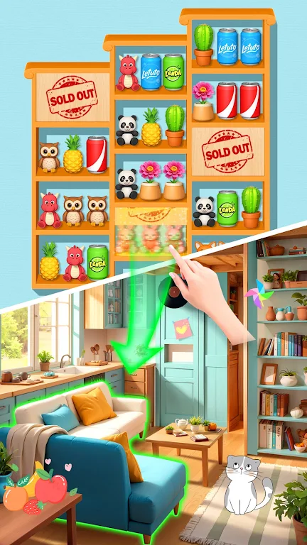 值得注意的是,每个货架最多只能放置三件商品。一旦超过了这个数量,便会引发混乱,游戏也会瞬间进入紧张状态。这就要求玩家在进行分类时,必须时刻关注货架的剩余空间,从而制定出合理的策略,以便迅速清空货架,顺利通关。