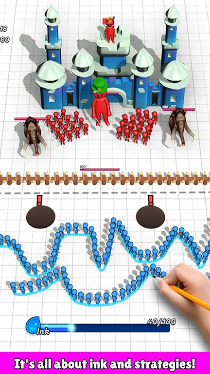 《墨水围攻》是一款融合了策略、战斗和艺术创作的独特火柴人冒险游戏。在这个充满色彩与策略的世界中,玩家将化身为指挥官,绘制战术墨迹来引导你的火柴人军队,参与激烈的战斗,征服敌对势力,最终争夺至高无上的统治权。游戏不仅仅是一场战斗的较量,更是艺术与策略的完美结合,为玩家提供了一种耳目一新的体验。
