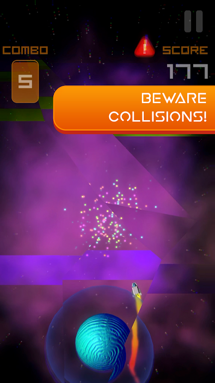 在《土星回转》中,你的每一个动作不仅影响着飞船的飞行轨迹,还将动态改变游戏的音轨。你的表现将与背景音乐产生共鸣,音乐的节奏将随着你的游戏进程而变化。试图利用连击来推动节拍的高度,看看你能否引发更深层次的低音震动,这不仅是技巧的挑战,更是对节奏感的考验。
