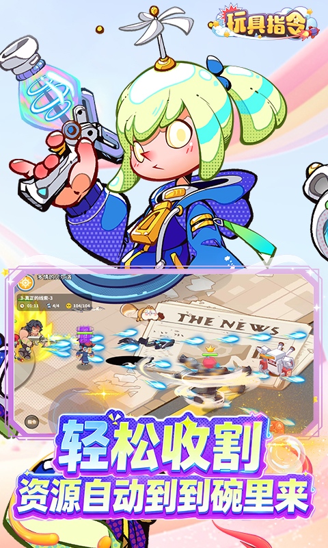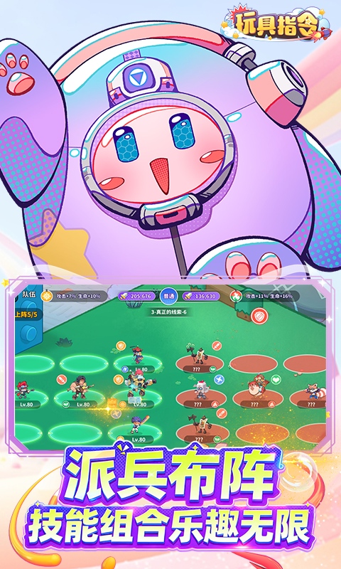 《玩具指令》是一款卡通风放置卡牌手游,游戏融合了放置策略和割草战斗的趣味玩法。游戏中主角因实验意外缩小到只有手办大小,随后结识了许多玩具伙伴,并组建了属于自己的冒险团,从而踏上了寻找恢复身体大小的道路。游戏中玩具伙伴共有五大阵营和五种职业,各个阵容和职业之间相辅相成,组合成强大的冒险团,从而揭开玩具世界的神秘面纱!游戏玩法轻松休闲,轻松体验策略搭配和割草战斗的乐趣。