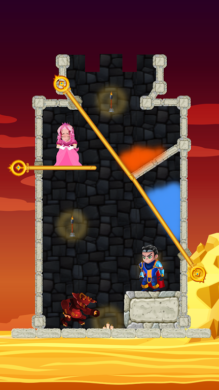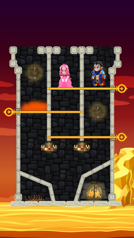 每一关都有独特的障碍和谜题,考验玩家的反应能力和策略思考。在游戏中,你需要运用不同的技巧来解决问题,通过拔出插销来改变环境的情况,帮助英雄逃脱困境。成功的关键在于观察和计算,玩家必须评估周围的怪物移动路线,以及环境中可能隐藏的危险。通过灵活的思考和精准的操作,才能准确无误地完成任务。