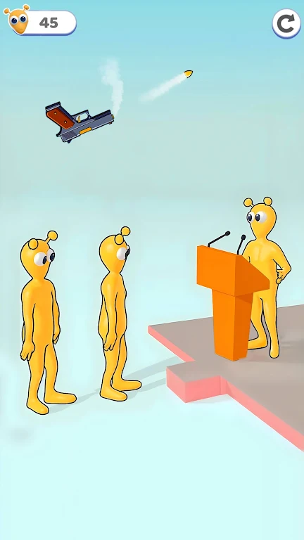 枪械翻转:布娃娃射击游戏的最大亮点在于其创新的枪翻转机制。玩家必须通过不同的翻转技巧将枪支掷出并瞄准目标。这种新奇的玩法将传统射击元素与物理反应相结合,增加了游戏的趣味性和挑战性。每一次翻转都需要精准的时机控制,让你在享受动作的同时,考验自己的反应能力。