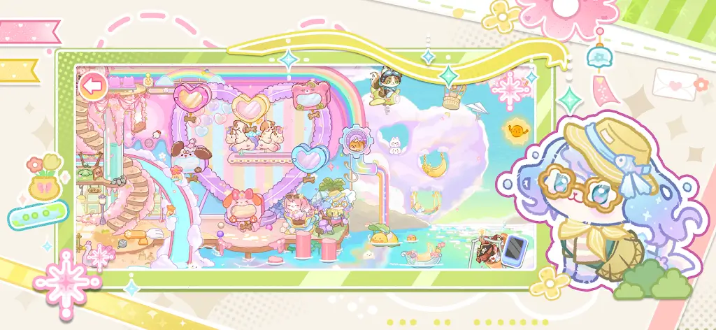 在《我的狗狗小镇》中,梦幻乐园藏在狗狗镇的绣球花丛后,是一个神秘而美丽的星光湖泊,湖面如同镜子般反射着点点银光。在这个特别的地方,居民们把梦想与现实融汇成一片奇幻之境,创造了绚丽多彩的彩虹跑道,为小狗们提供了尽情奔跑的空间;粉色的藤蔓秋千轻轻摇曳,吸引着狗狗们在温暖的阳光下嬉戏玩耍。漫天飞舞的萤火虫则编织成了一条星河,闪烁着微弱却温暖的光辉,给这个乐园增添了一份浪漫而神秘的气息。