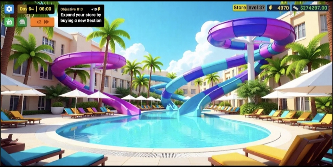 《水上乐园经营模拟器》不仅仅是一个经营游戏,更是一个让您发挥想象力与创造力的平台。在这个充满色彩与欢乐的水上世界中,尽情享受建造与管理的乐趣,迎接每一位带着笑容的游客。