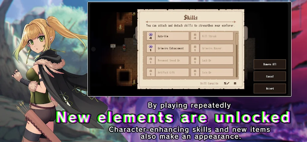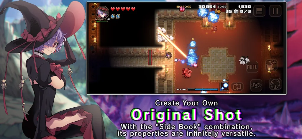 游戏的一个核心特点是玩家能够创造独特的“魔法射击”。通过组合超过20种不同的定制物品,玩家可以改变角色的攻击特性。这些物品在每次进入地下城时随机出现,提供了无尽的战斗组合可能性。每一场战斗都是独一无二的,玩家可以根据自身的策略和即时情况调整攻击方式,使战斗变得更具战略性和趣味性。