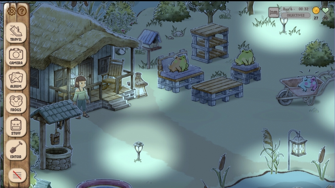 卡玛鲁:青蛙庇护所鼓励玩家放慢脚步,享受与自然相处的宁静时光。在这个快节奏的时代,游戏让你切换到另一种生活方式。在青蛙庇护所里,没有压力,只有欢乐和探索的乐趣。收集、播种、修复,以一种轻松愉悦的方式来体验游戏的魅力。