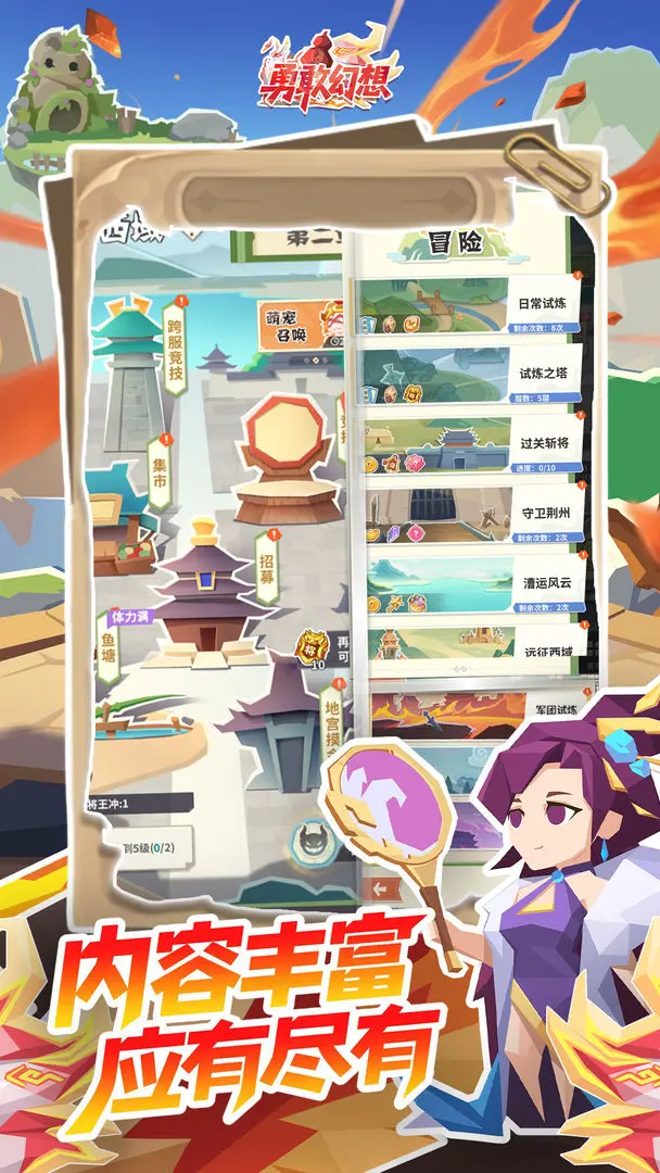 《勇敢幻想(测试)》通过独特的剪纸艺术和丰富的玩法,重构了一个全新的三国世界。不论是策略对战的节奏,还是轻松闲适的摸鱼时光,都在这个游戏中找到了属于自己的位置。在这里,每一个玩家都能在充满幻想的三国旅程中,携手共创梦想,启程探索无限可能。