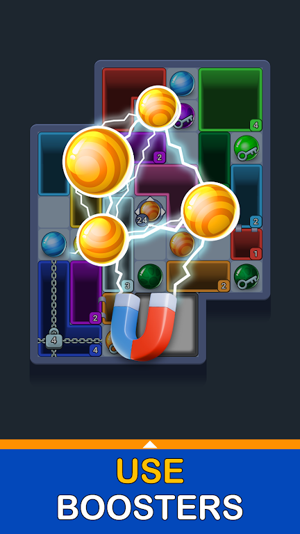 《坠落逃生:色彩谜题》在视觉效果上也做了大量优化。鲜艳的弹珠和清晰的动画效果,使得玩家可以轻松阅读棋盘并规划下一步行动。游戏中引入的特殊洞类型,如冰洞、神秘洞等,为战略布局增添了新的维度,玩家需要思考如何克服这些障碍,实现目标。