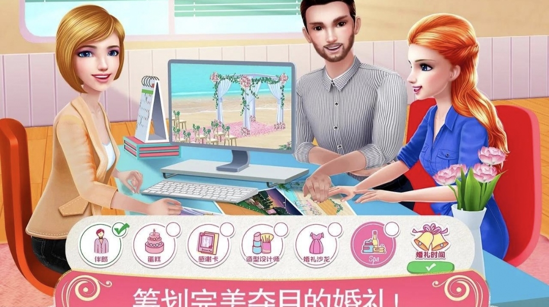 《可可婚礼》为玩家提供了真正的3D体验。精致的场景设计与细腻的人物模型,让玩家仿佛置身于梦幻的婚礼现场。通过简单易上手的操作,玩家可以轻松调整可可的妆容与造型,实时预览她的每个细节,确保每一个选择都是完美无瑕的。
